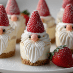 Gnome mini cheesecakes are an irresistible no-bake Christmas dessert that blends creamy cheesecake filling with charming holiday flair. Each one is crafted into a tiny gnome, complete with a strawberry hat and frosting beard, making them both a festive centerpiece and a delicious individual treat. These whimsical bites are rich, smooth, and perfectly portioned—ideal for gatherings, gifting, or holiday baking fun with the family.