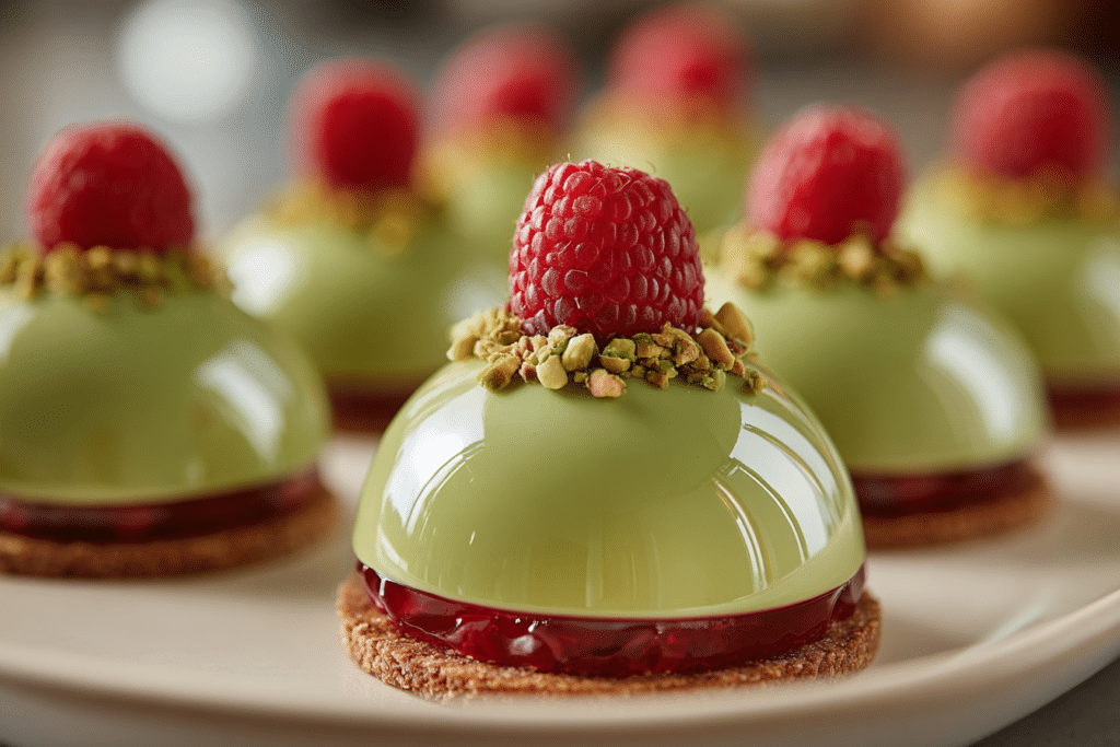 Pistachio & Raspberry Cheesecake Domes are a stunning no-bake dessert that blends delicate flavor, creamy texture, and vibrant color into a beautiful individual treat. Inspired by French entremets and modern …
