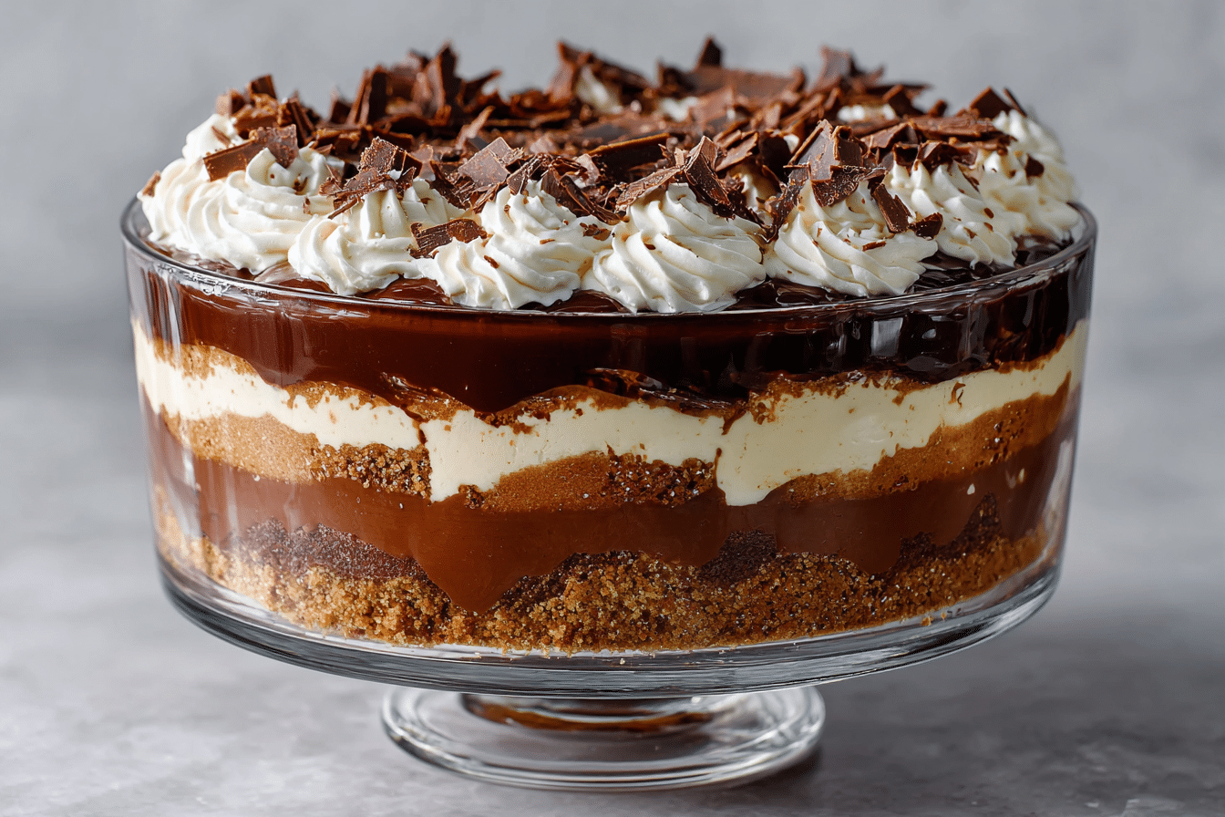 A layered dessert of rich brownies, Baileys-spiked chocolate cheesecake mousse, and fluffy whipped cream — the ultimate trifle for chocolate lovers.