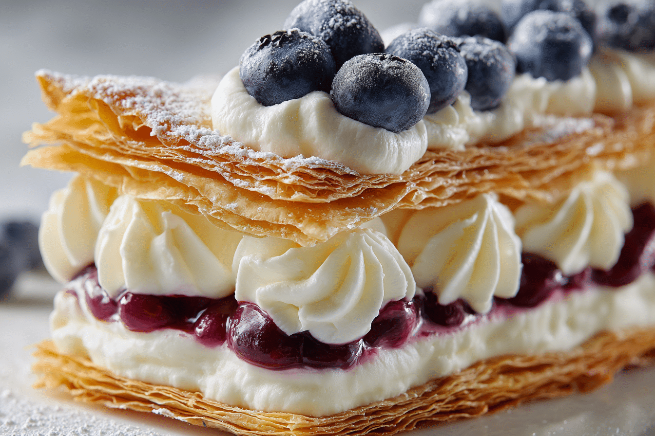 A simple yet elegant dessert made with flaky puff pastry layers, sweet whipped cream, and a medley of fresh berries. Perfect for spring gatherings and summer celebrations.