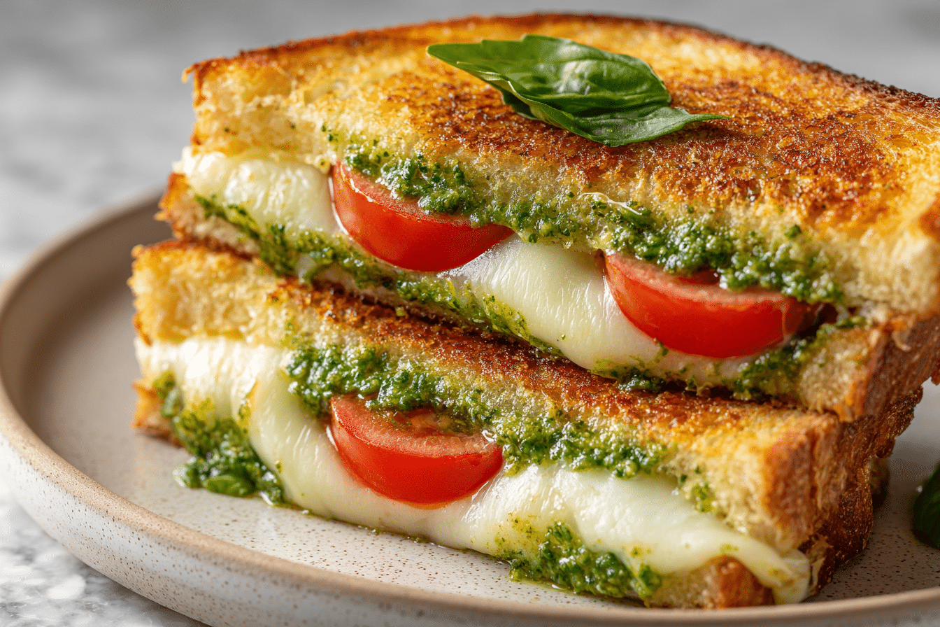 This version keeps the process approachable while adding just enough character to make it memorable. The pesto seeps into the bread as it grills, infusing every layer with basil, garlic, and olive oil. Paired with the right cheese and properly toasted bread, this sandwich becomes a reliable favorite for lunch, dinner, or even a quick indulgent snack.