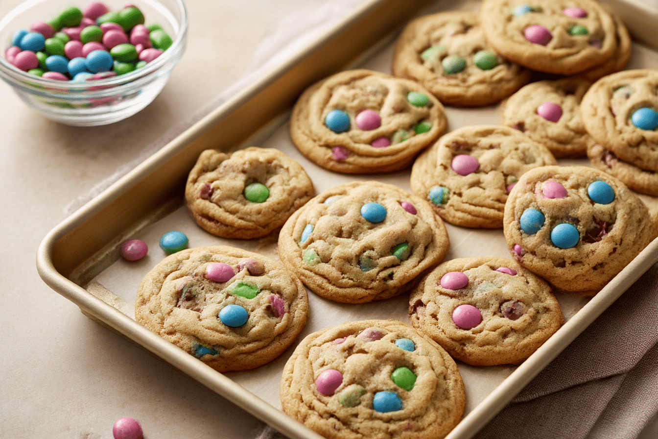 Press a few extra mini egg pieces on top of each dough mound for a colorful finish. Bake for 10 to 12 minutes, until the edges turn lightly golden while the centers remain slightly soft.
