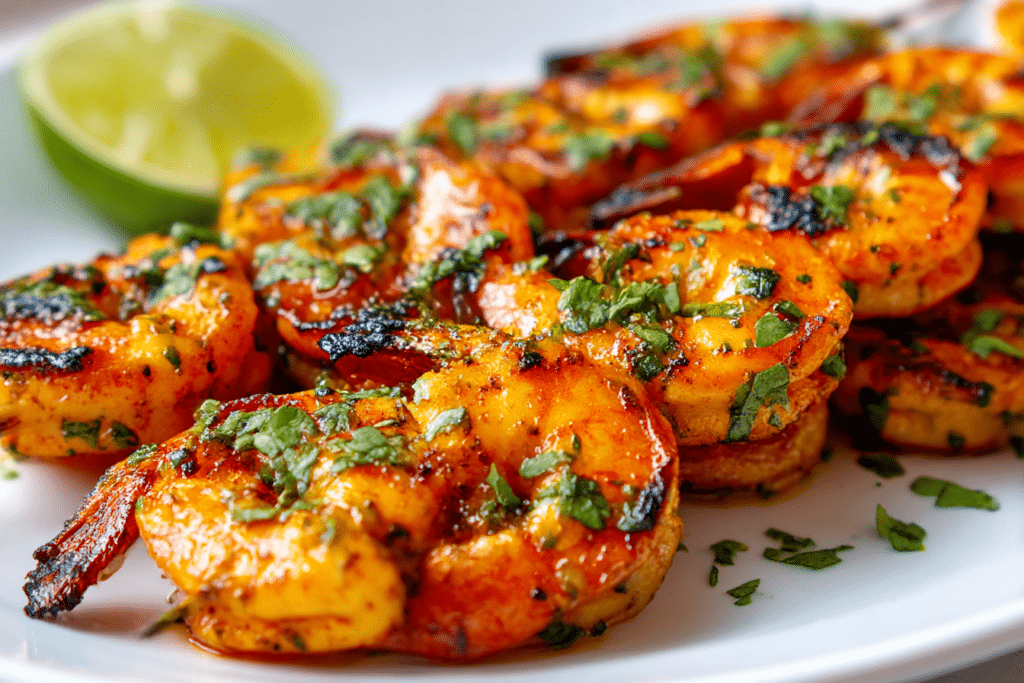 Chili Lime Shrimp Recipe with Grilled Herb Garnish