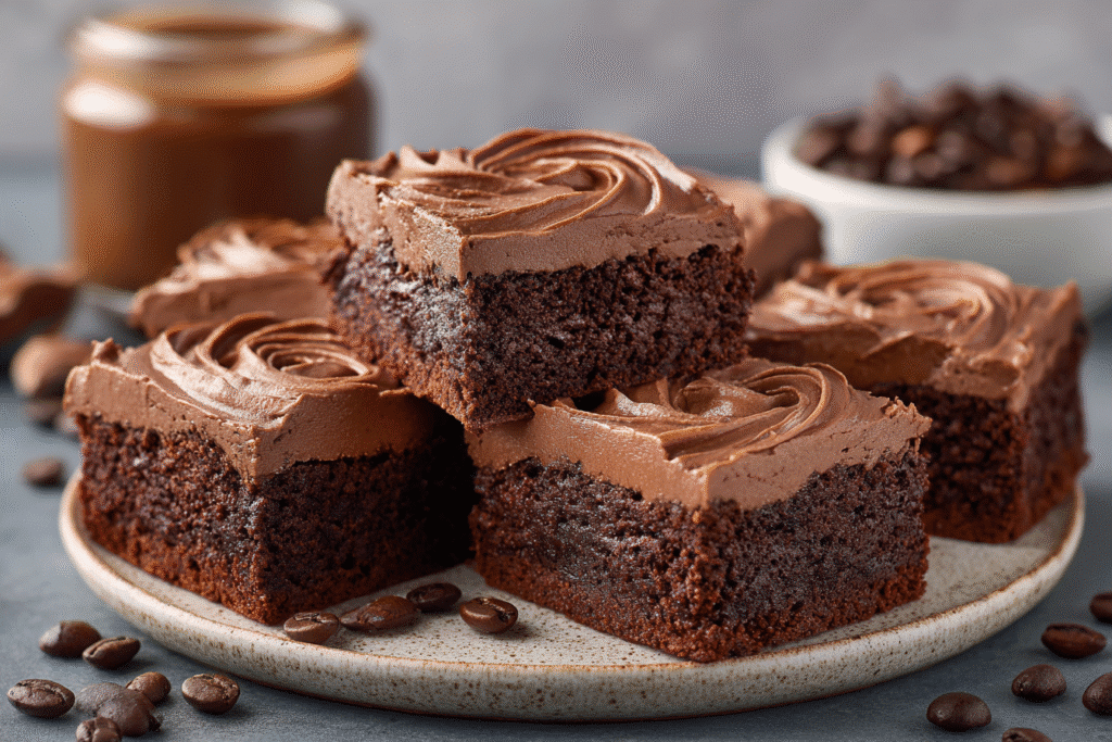 Chocolate Coffee Brownies with rich mocha buttercream