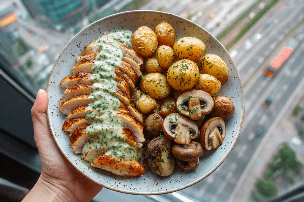 Healthy Chicken and Mushrooms Dinner Plate