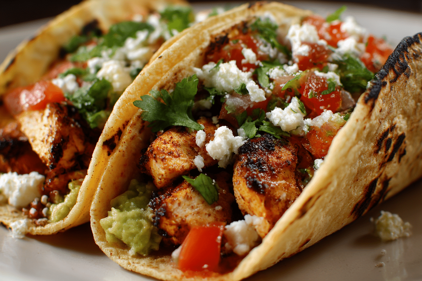 Juicy seasoned chicken served in warm corn tortillas with fresh onion, cilantro, and lime for a simple and authentic street taco experience.