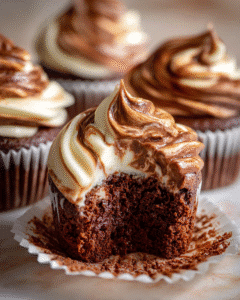 Mocha ganache, espresso buttercream, or a simple dusting of cocoa powder can finish these cupcakes.