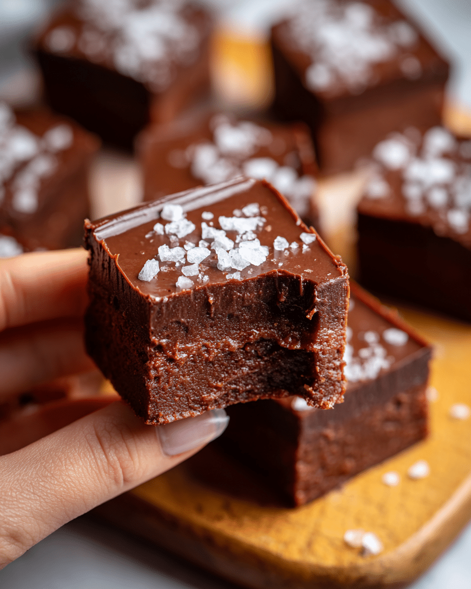 Pour the ganache over the cooled brownies and spread evenly with a spatula. For an extra touch of elegance, sprinkle a bit of flaky sea salt or chocolate shavings on top.