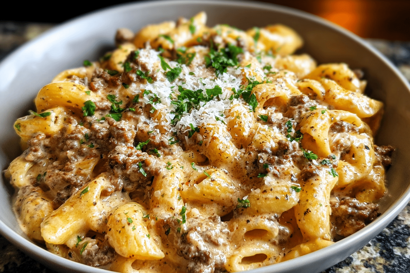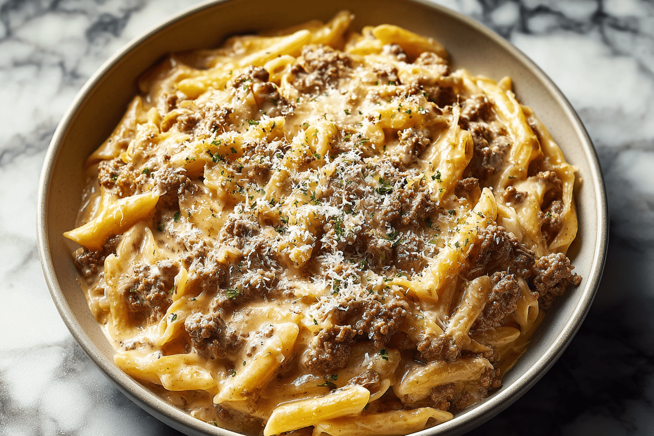 Creamy Beef Pasta for Cozy Nights is a rich and satisfying dish made with tender pasta, seasoned ground beef, and a smooth, creamy sauce.