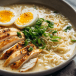 Creamy Garlic Chicken Ramen is a rich, satisfying dish that blends tender chicken, a silky garlic-infused broth, and perfectly cooked noodles into one deeply comforting bowl. This recipe takes inspiration from classic ramen while adding a creamy twist that makes each spoonful smooth and flavorful.