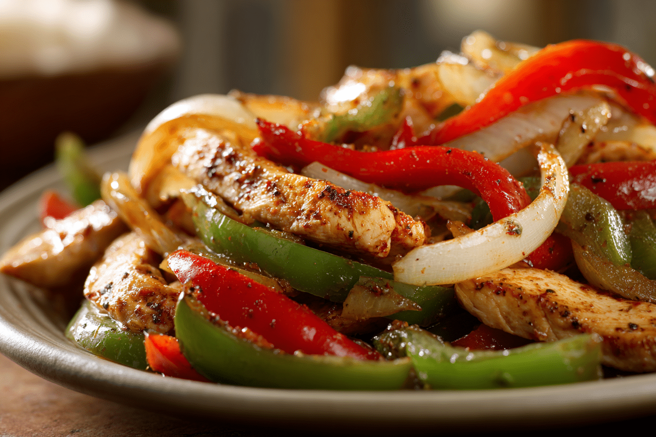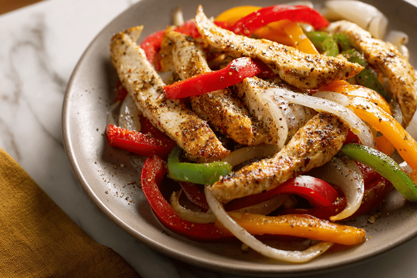 Bell peppers and onions are essential for fajitas. They soften during cooking while maintaining a slight bite, adding both sweetness and texture.