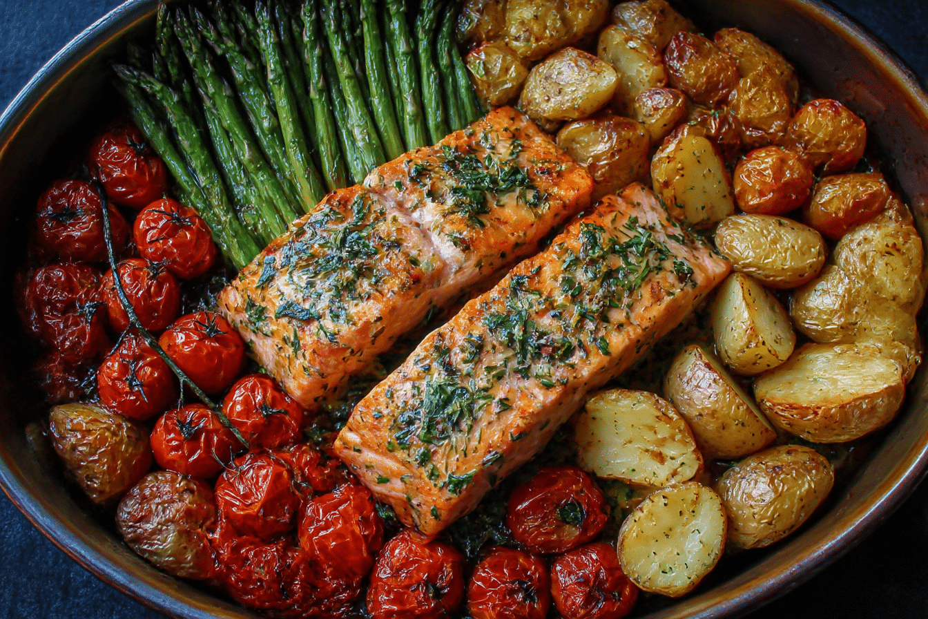 Easy Healthy Sheet Pan Salmon Dinner is a quick, nutritious, and visually stunning meal perfect for weeknight dinners or casual entertaining. This recipe brings together perfectly cooked salmon fillets, tender vegetables, and a light, flavorful seasoning all on a single sheet pan, making cleanup effortless. The combination of juicy salmon, crisp-roasted vegetables, and subtle herbs creates a balanced plate that’s satisfying, colorful, and naturally healthy. Each bite offers a delicate flake of salmon paired with caramelized vegetables, making this sheet pan dinner a family favorite and a go-to for anyone seeking a wholesome, fuss-free meal.