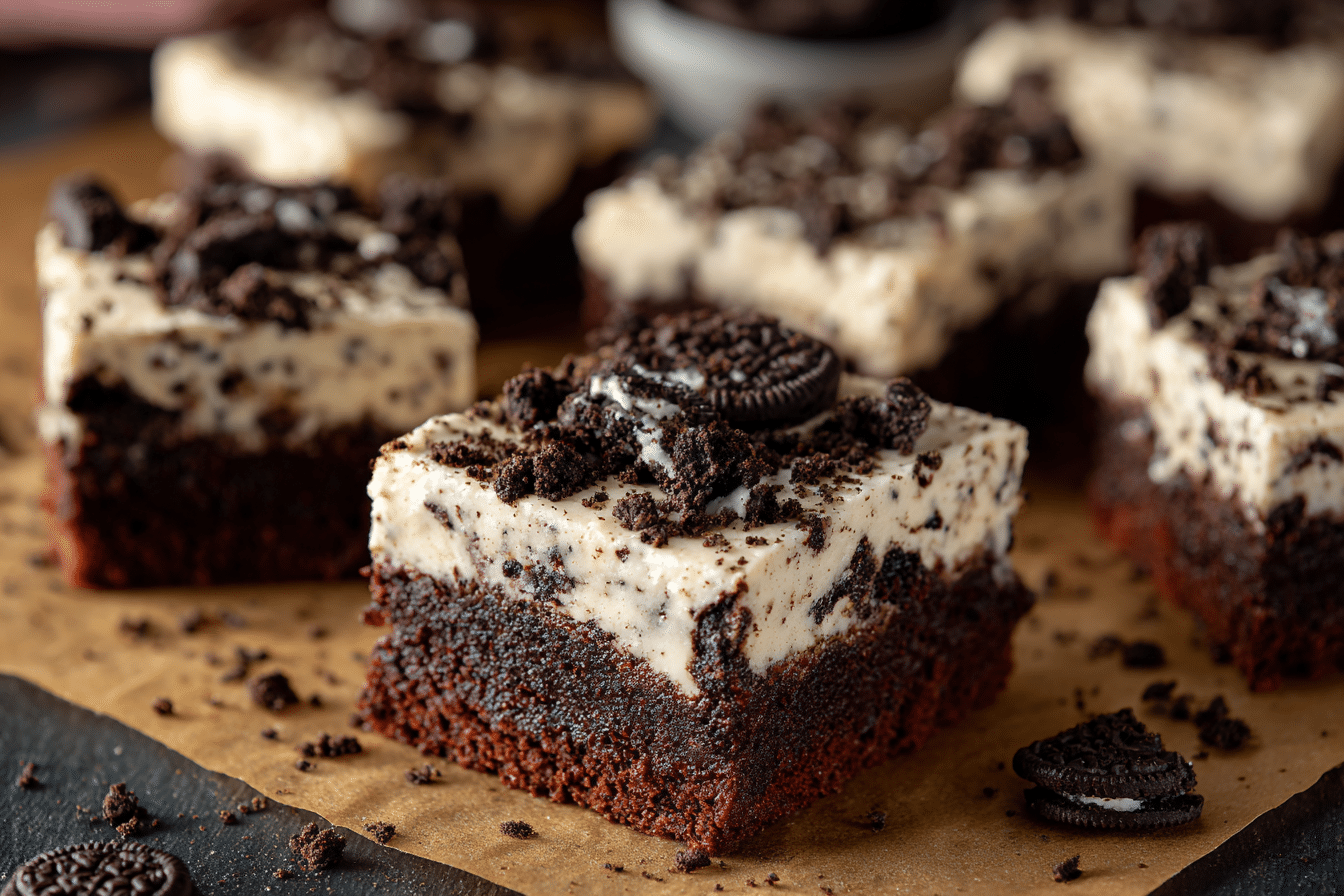 Whether you’re baking for a party, a potluck, or just because your sweet tooth demands it, this treat delivers big flavor with minimal effort. The creamy filling of the cookies melts slightly into the brownie base, creating pockets of vanilla sweetness against the dark cocoa richness. It’s the best of both worlds, baked into every bite.