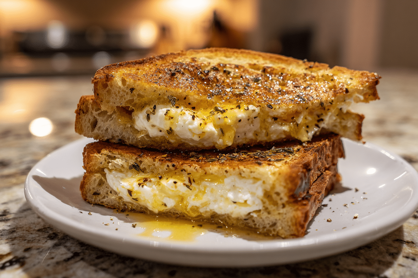 Goat Cheese Grilled Cheese with Honey is a simple yet refined twist on a classic sandwich, combining creamy, tangy cheese with a touch of natural sweetness. The contrast between the rich goat cheese and the delicate drizzle of honey creates a balanced flavor that feels both comforting and slightly elevated.