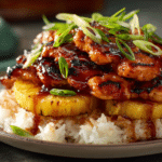 Hawaiian Huli Huli Chicken Stack is a vibrant dish inspired by classic island flavors, combining tender grilled chicken with a sweet and savory glaze. The chicken is layered with grilled pineapple and fresh toppings, creating a balanced stack that is both satisfying and full of contrast.