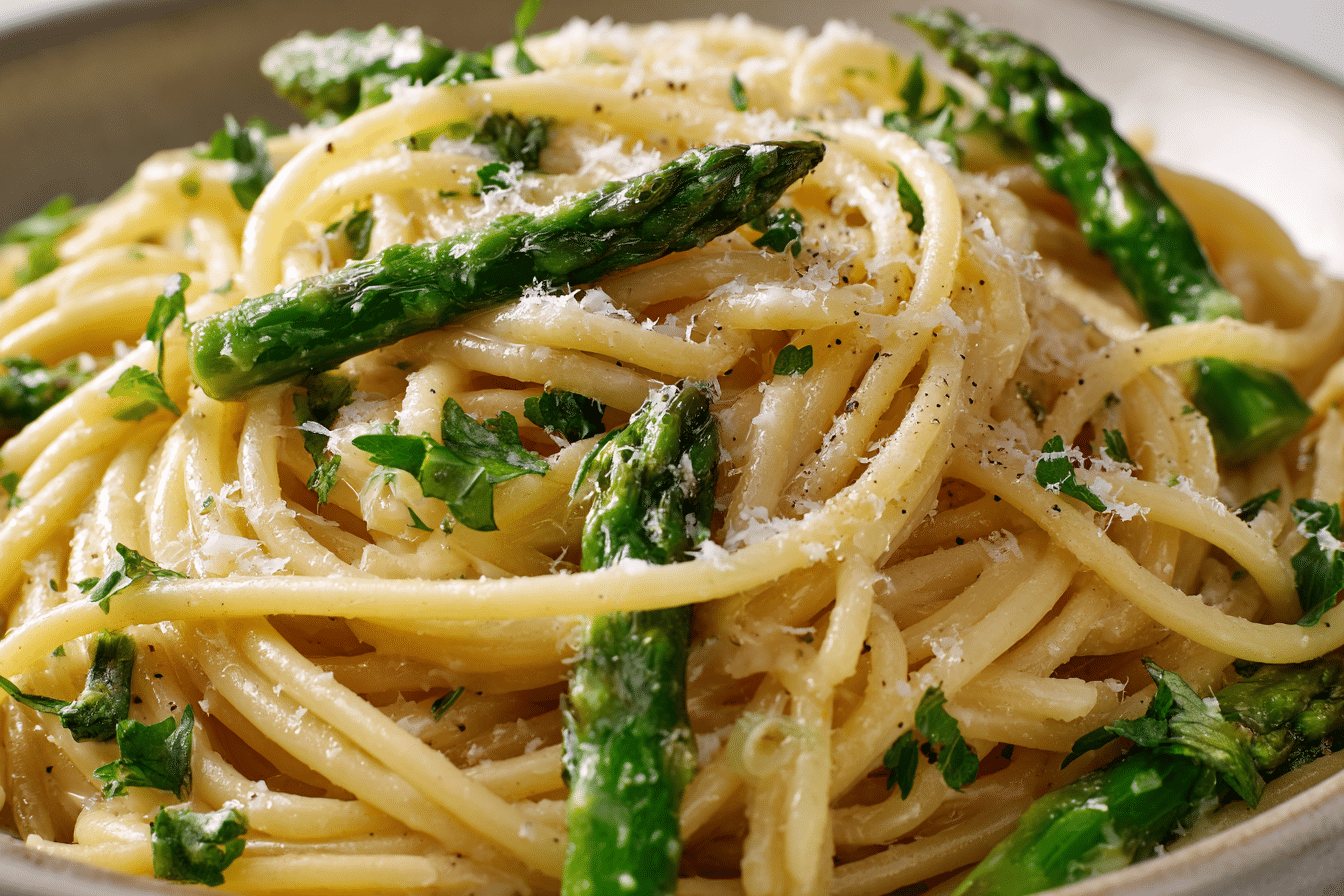 A light and fresh pasta dish with asparagus, lemon, and Parmesan for a balanced and satisfying meal.