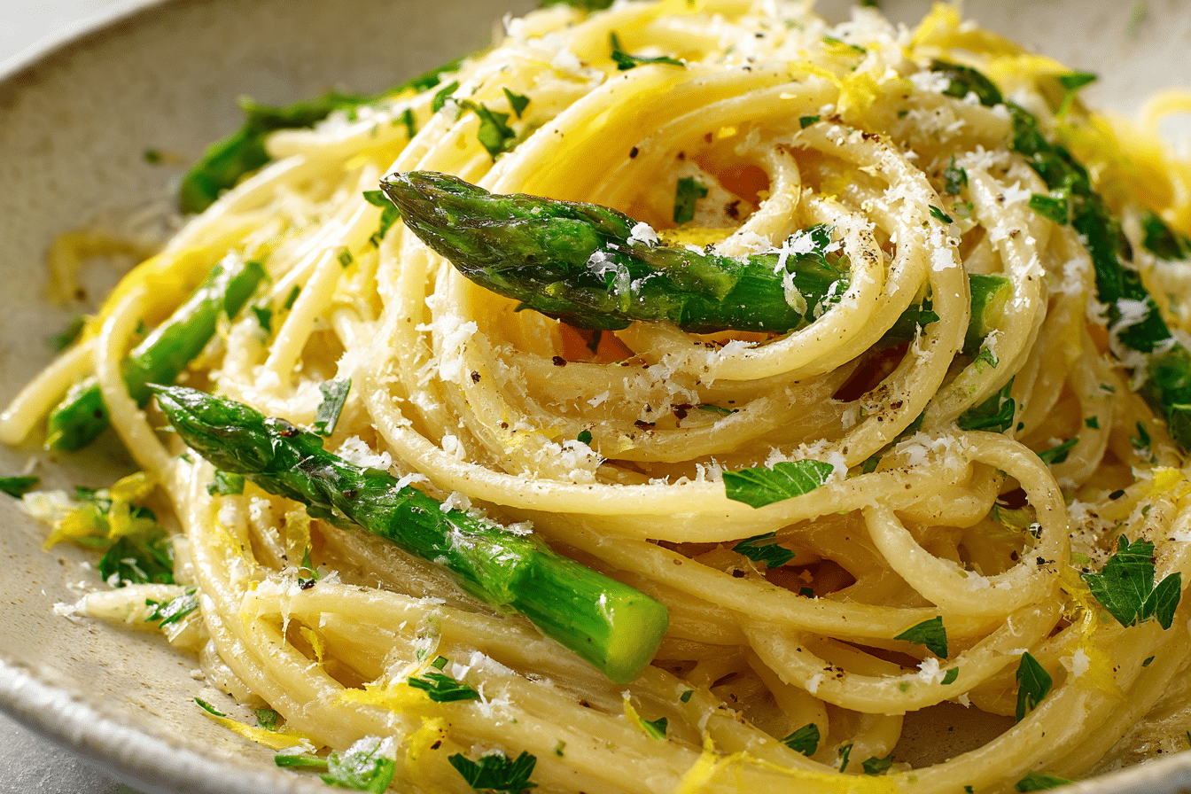 A light and fresh pasta dish with asparagus, lemon, and Parmesan for a balanced and satisfying meal.