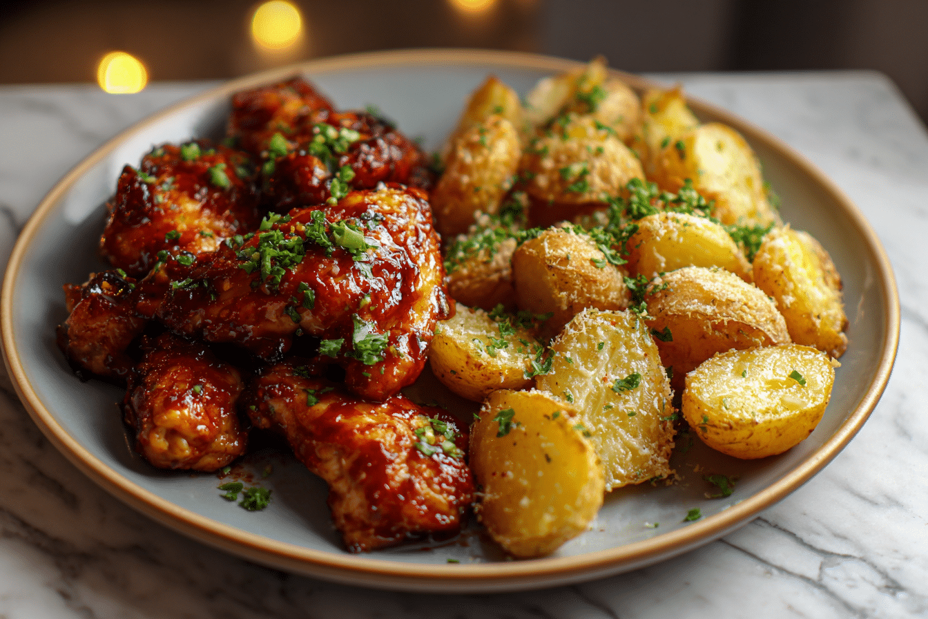 Honey BBQ Chicken & Garlic Parmesan Potatoes works well as a complete meal on its own, but it can also be paired with a fresh green salad or steamed vegetables for added balance.
