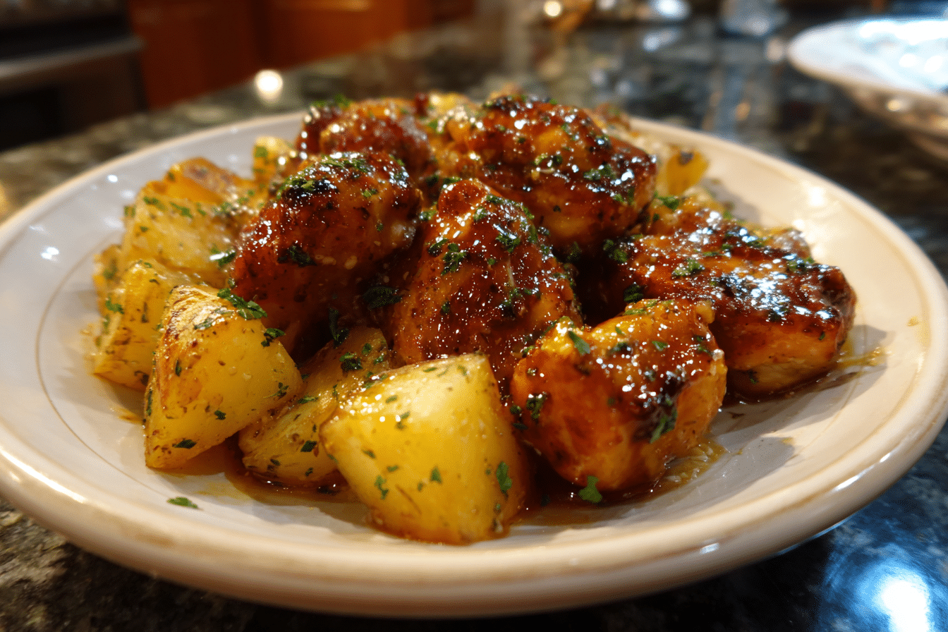 Seasonings such as paprika, salt, and black pepper enhance both components without overwhelming them. The balance between sweet chicken and savory potatoes is what makes this dish so satisfying.