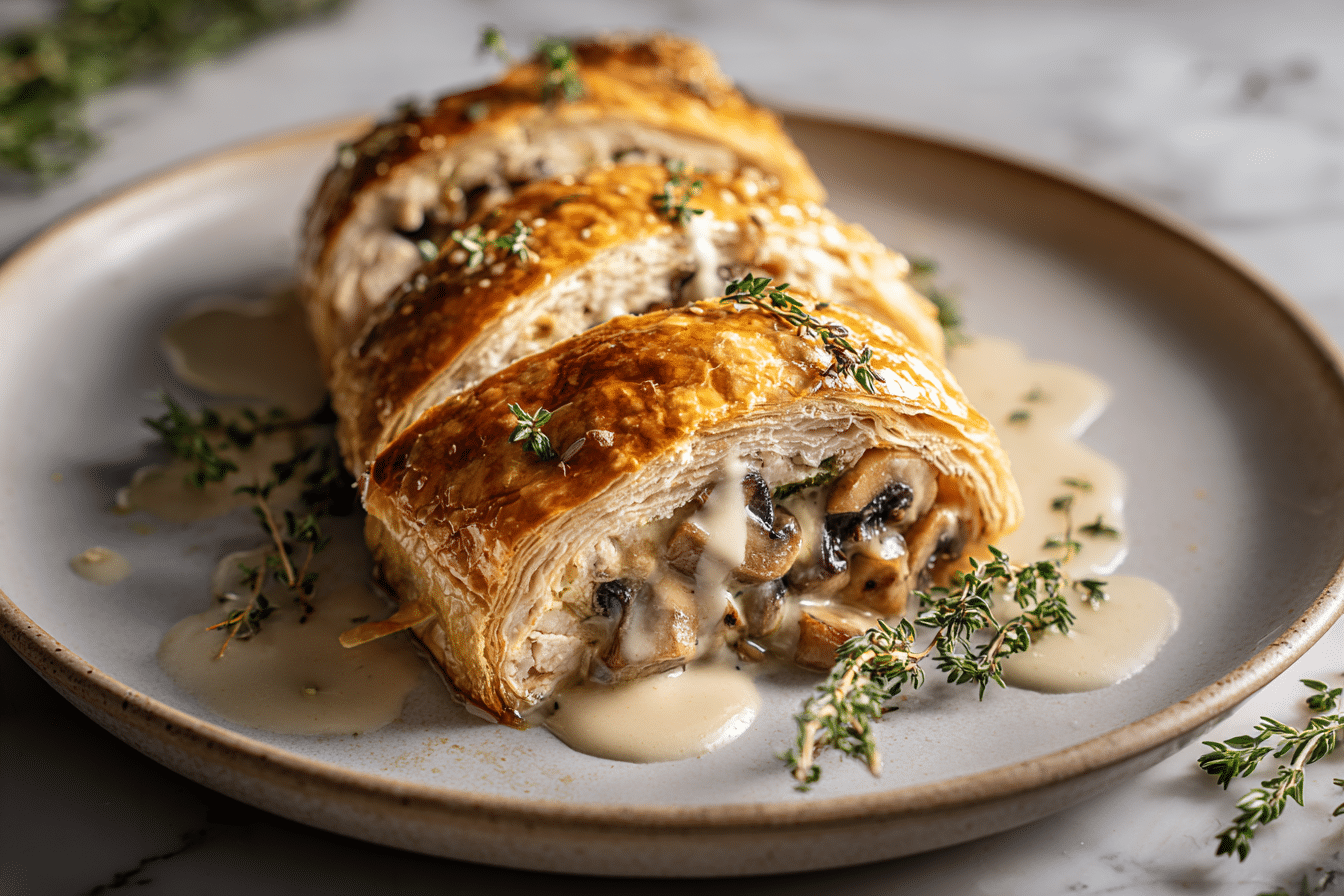 Serve it with roasted vegetables, mashed potatoes, or a simple green salad. These sides balance the richness of the pastry and sauce.