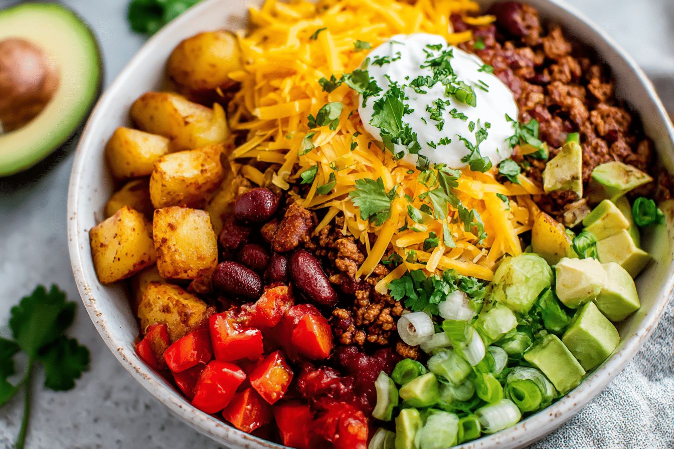 Perfect for weekly meal prep or relaxed family dinners, Loaded Potato Taco Bowl delivers big flavor in a practical, build-ahead format that keeps well and reheats beautifully.