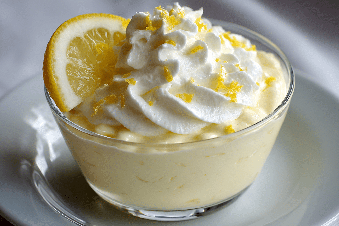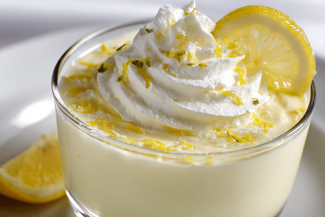 The texture is what truly sets this dessert apart—smooth, airy, and melt-in-your-mouth. It’s not overly sweet, making it perfect for those who prefer a more sophisticated finish to a meal. Served in glass cups or ramekins and topped with a swirl of whipped cream or lemon zest, it’s a visually charming finale that feels luxurious but requires no baking.
