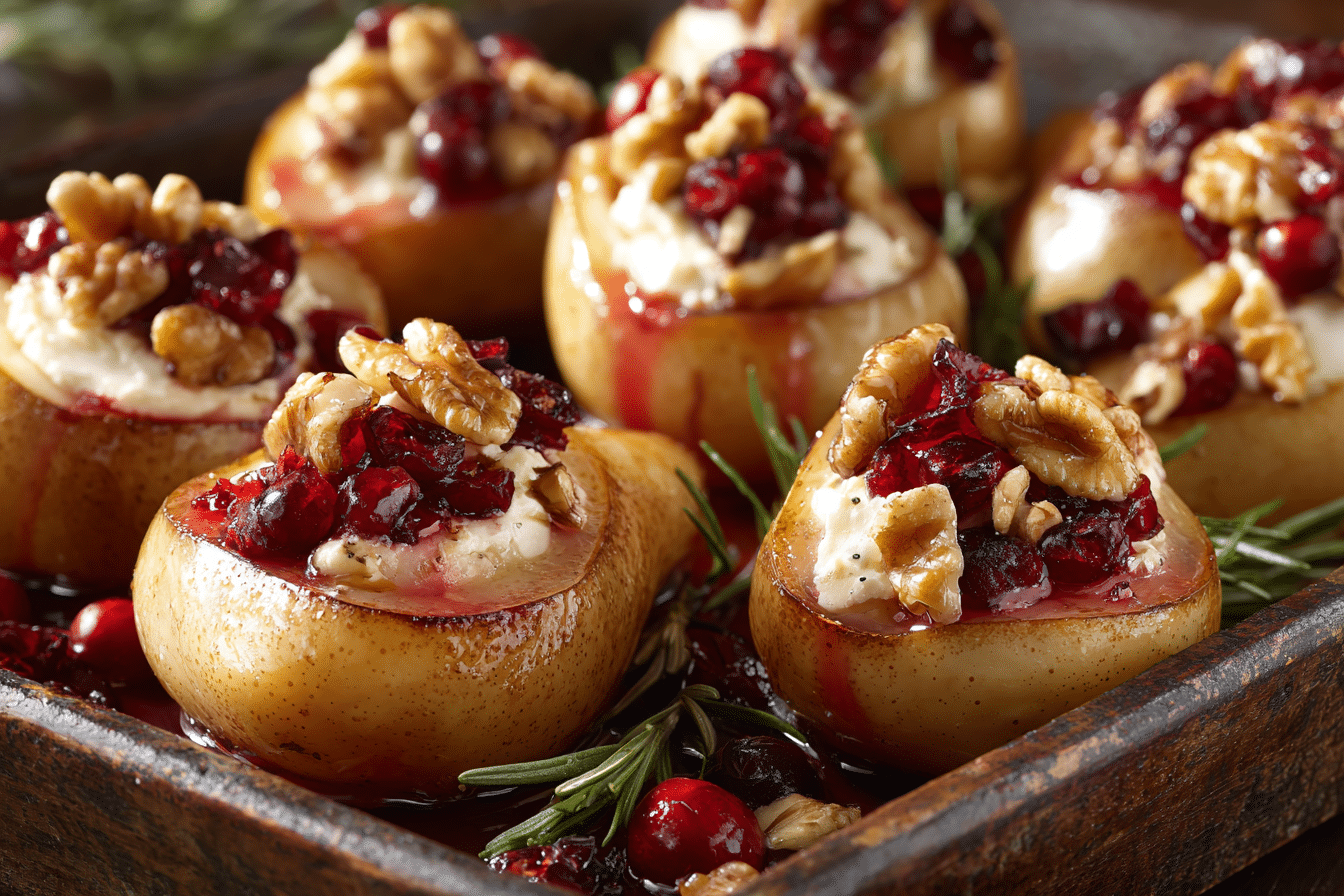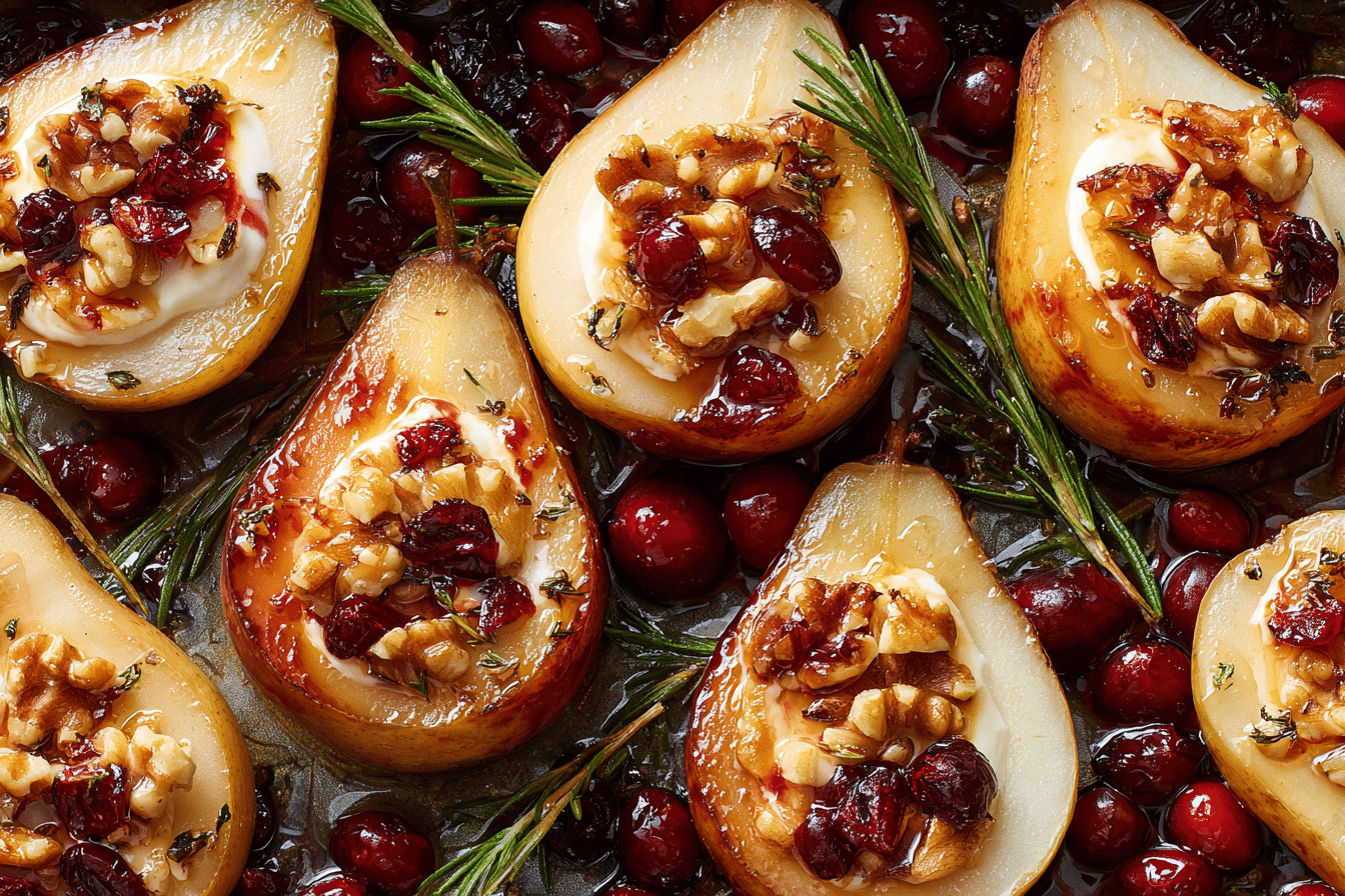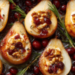 Honey-Roasted Pears with Mascarpone and Cranberry Drizzle are perfect for holiday dinners, fall and winter gatherings, or romantic dinners at home. Their rich color, fragrance, and plating make them a natural centerpiece for special occasions.