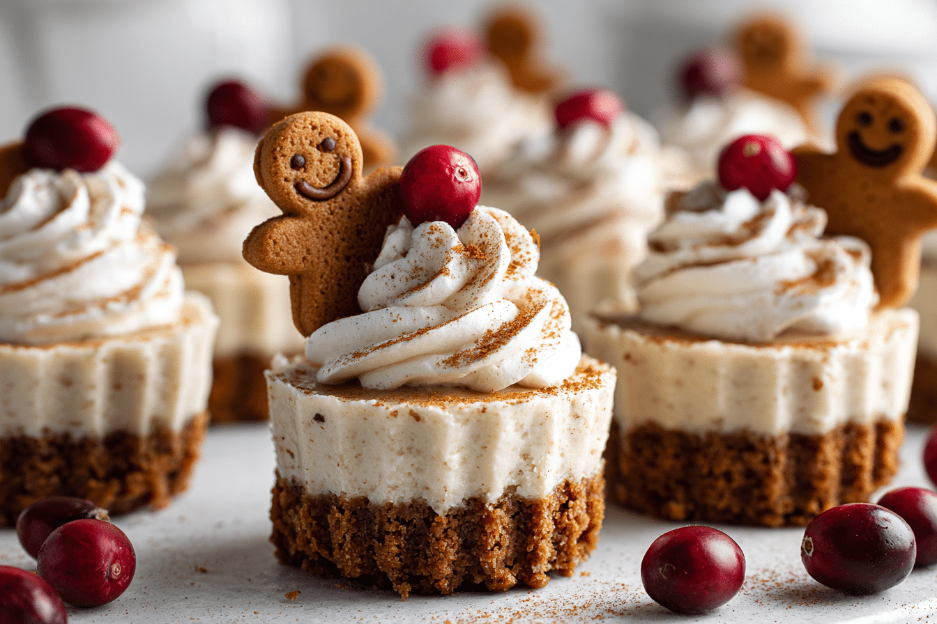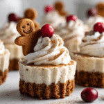 These layered treats are perfect for entertaining or gifting, as they look beautiful in individual cups or jars. Imagine a buttery gingersnap crust, silky gingerbread-spiced cheesecake filling, and a cloud of whipped cream on top. It’s the kind of dessert that makes people pause, smile, and ask for the recipe.