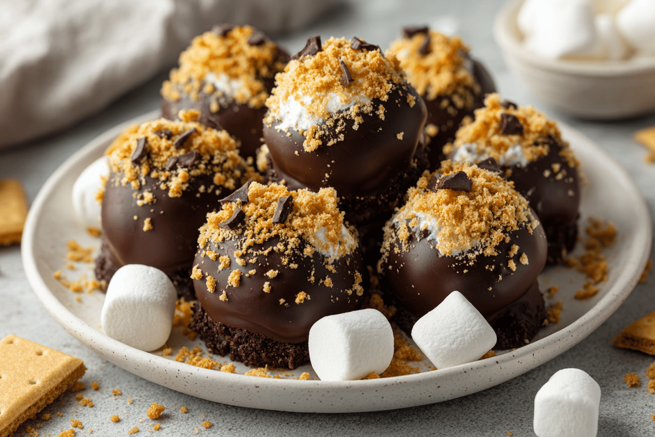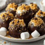 No-bake truffles filled with marshmallows, rolled in rich chocolate ganache, and coated in graham cracker crumbs — a bite-sized take on classic s’mores.