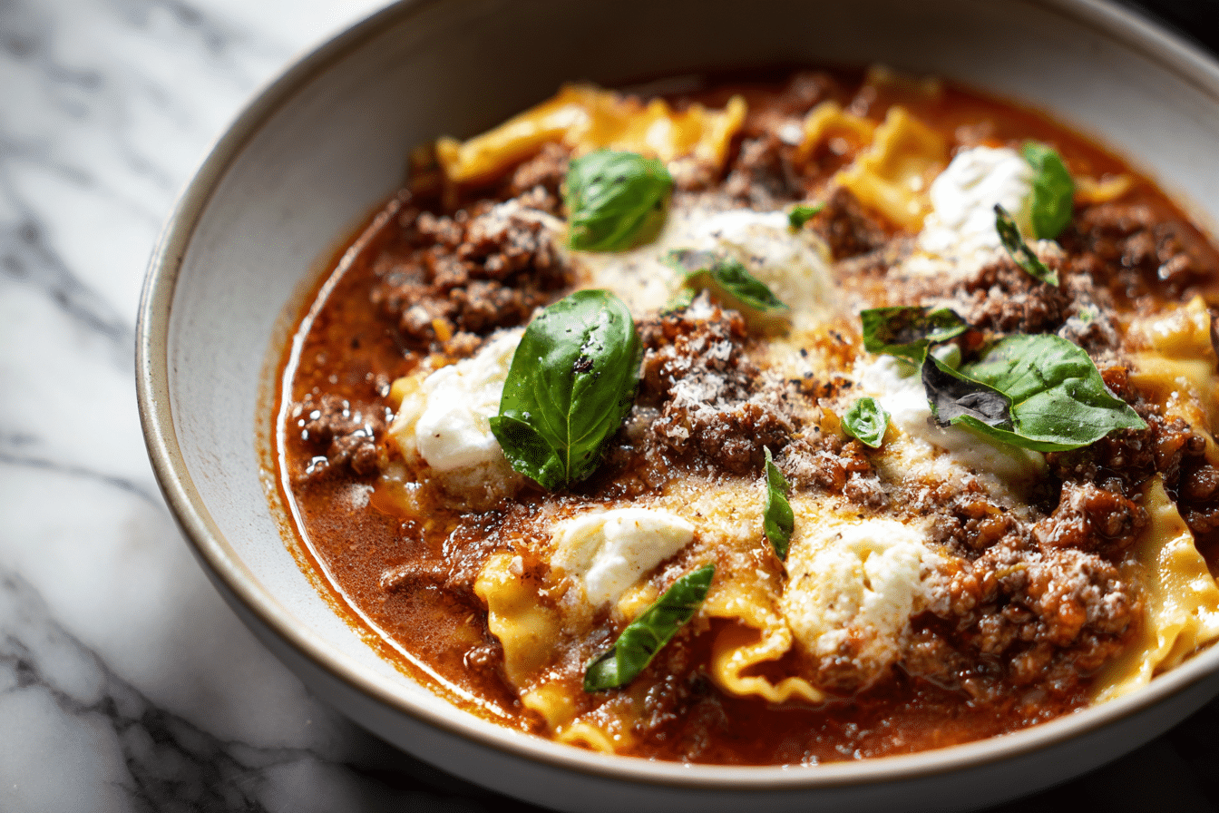 One-Pot Lasagna Soup is a hearty and comforting dish that transforms classic lasagna flavors into a rich, tomato-based soup with tender noodles and melted cheese.
