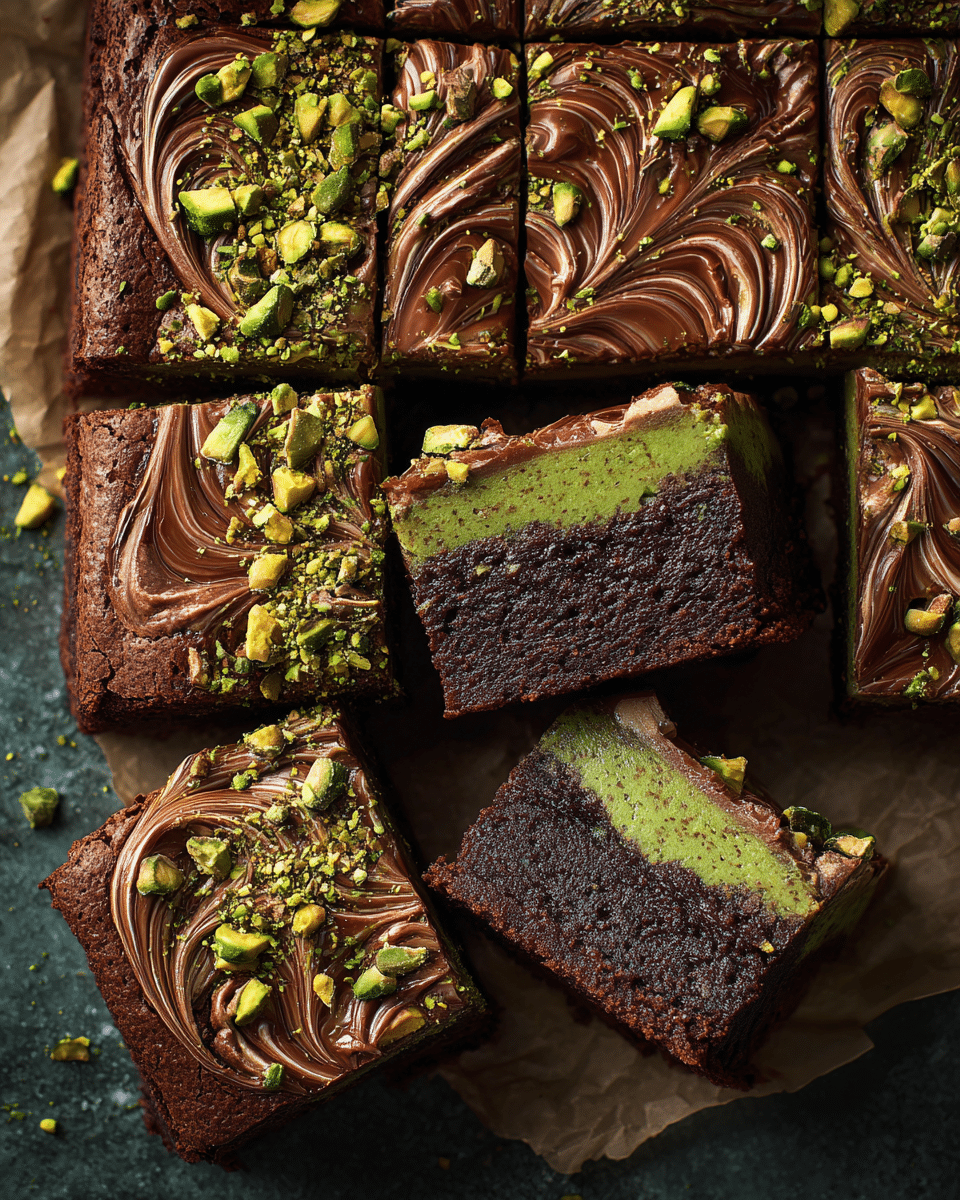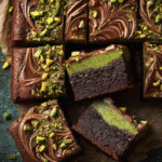 Inspired by the rich dessert flavors of Dubai, these pistachio chocolate brownies combine a dense, fudgy chocolate base with crunchy roasted pistachios and optional cardamom or rosewater.