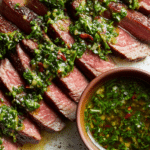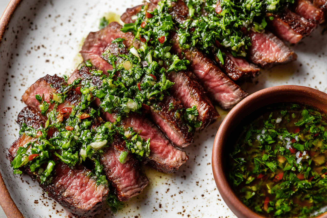 Juicy grilled steak served with bright, herbaceous chimichurri sauce for a quick, flavorful, and colorful meal.