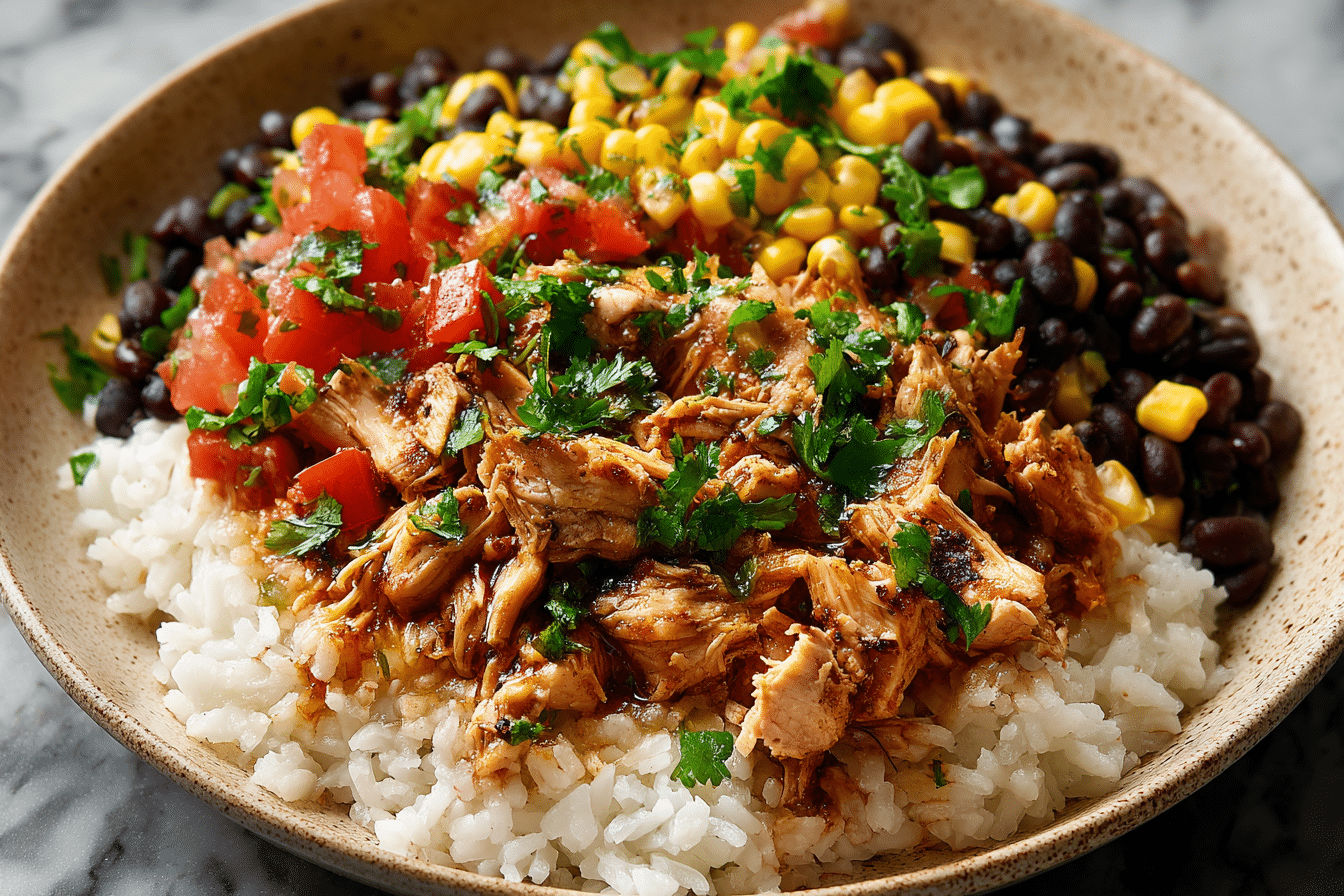 Slow Cooker Chicken Burrito Bowl is a hearty, well-balanced dish that brings together tender shredded chicken, seasoned rice, beans, and vibrant toppings in one easy meal. The slow cooker allows the flavors to develop gradually, creating a rich and satisfying bowl that feels both filling and fresh.