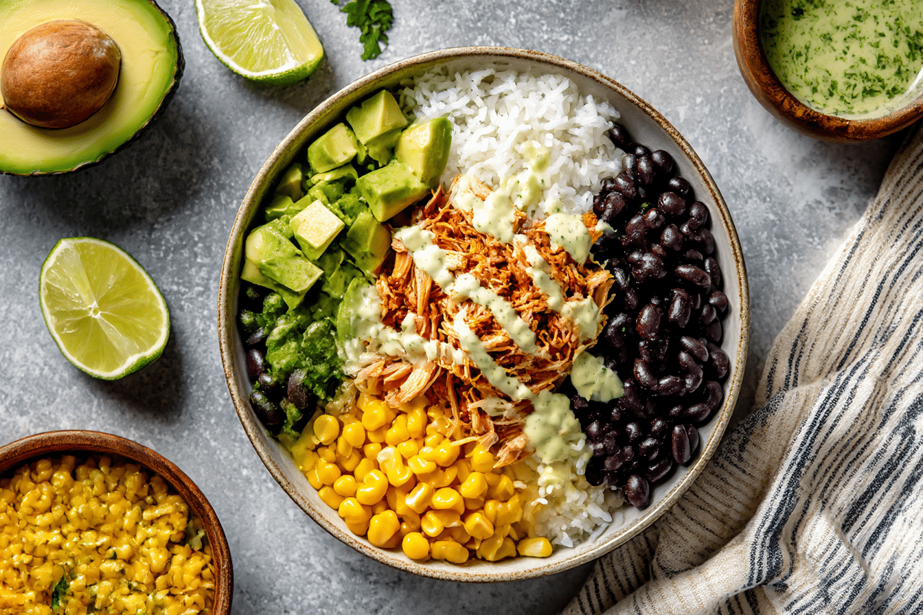The magic of this Slow Cooker (Crockpot) Chicken Burrito Bowl That Will Make You Hungry lies in its simplicity. Chicken breasts or thighs cook slowly in a mixture of tomatoes, spices, and aromatics until juicy and infused with flavor. When combined with beans, corn, and rice or quinoa, the result is a complete, balanced meal with protein, fiber, and complex carbohydrates. Toppings such as avocado, shredded cheese, fresh cilantro, and lime elevate the dish, making it vibrant, colorful, and full of texture.