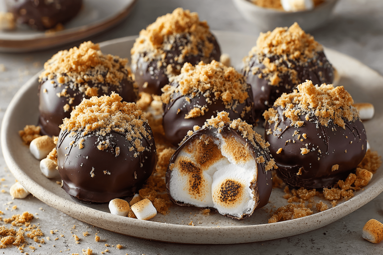 No-bake s’mores marshmallow truffles bring together everything you love about classic campfire s’mores—graham crackers, marshmallows, and chocolate—in one soft, sweet, bite-sized treat. These truffles are rich, creamy, and packed with nostalgic flavor, all without the need for an open flame or oven. They feature a smooth marshmallow filling with graham cracker crumbs, coated in chocolate and topped with a sprinkle of crunch.