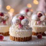 Delightfully whimsical and irresistibly creamy, snow globe cheesecake bites are the ultimate Christmas party showstopper. These mini no-bake cheesecakes sit on buttery cookie crusts and are topped with clear gelatin “domes” that encase festive holiday candies, sugared cranberries, or edible glitter—just like a snow globe in dessert form.