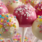 This recipe replicates the Starbucks version perfectly: moist vanilla cake blended with creamy frosting, shaped into balls, dipped in candy coating, and finished with rainbow sprinkles. They’re sweet, buttery, and slightly dense — just like the originals — and ideal for birthdays, baby showers, holidays, or a weekend baking project.