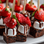 Strawberry Brownie Kabobs are a fun, easy, and crowd-pleasing dessert featuring rich brownie squares, fresh strawberries, and fluffy marshmallows on a stick. Perfect for parties and potlucks.