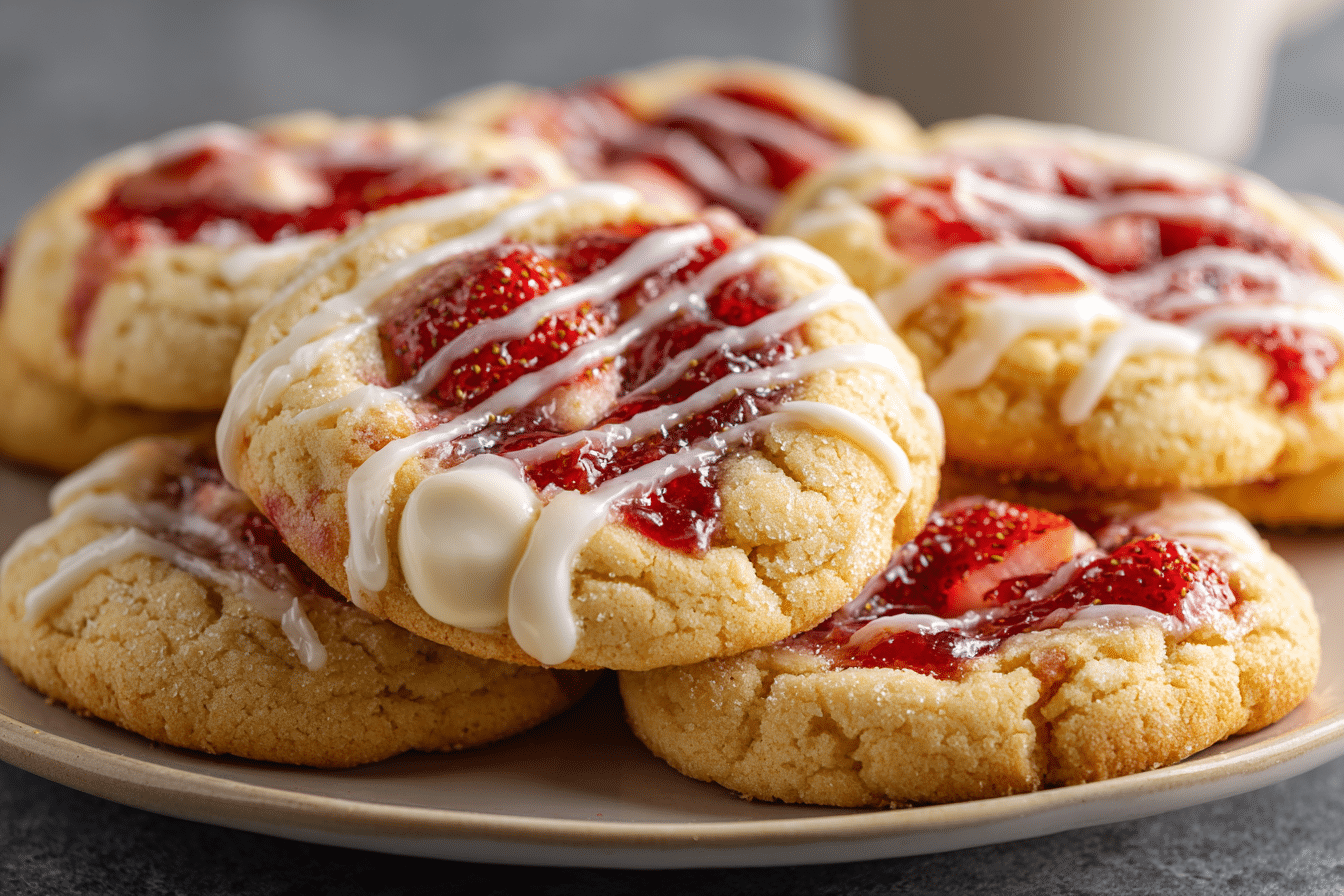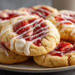 Soft, bakery-style cookies with creamy cheesecake filling and a swirl of homemade strawberry jam — a fruity, indulgent treat that tastes like a slice of strawberry cheesecake in every bite.
