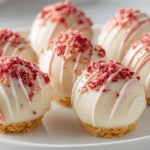 Strawberry cheesecake truffle balls bring the familiar flavors of classic cheesecake into a small, no-bake dessert that feels thoughtful and indulgent. These bite-sized treats combine a creamy cheesecake-style center with real strawberry flavor, finished in a smooth chocolate coating. The result is rich yet balanced, with sweetness that never feels heavy.