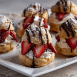 Strawberry Cream Puffs are the kind of dessert that looks fancy but feels delightfully down-to-earth. Each bite-sized puff is a perfect balance of light, crisp choux pastry, pillowy whipped cream, and sweet, juicy strawberries. They’re elegant enough for celebrations and simple enough to enjoy with an afternoon coffee.