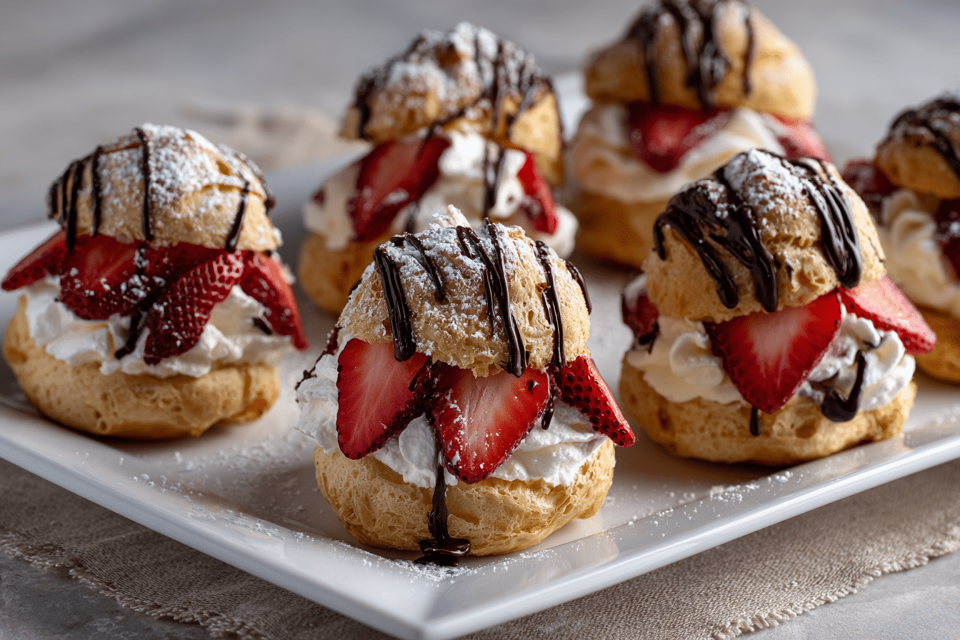 Light and airy choux pastry filled with sweet whipped cream and fresh strawberries. Strawberry Cream Puffs are delicate, elegant, and perfect for any celebration.