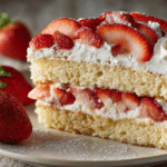 This cake is all about contrast: soft sponge, juicy berries, and airy cream. It’s not overly sweet, making it ideal for those who love light desserts with a natural fruit-forward flavor. Whether you’re serving it for a birthday, a picnic, or Sunday supper, this Strawberry Shortcake Cake promises to be the highlight of the table.