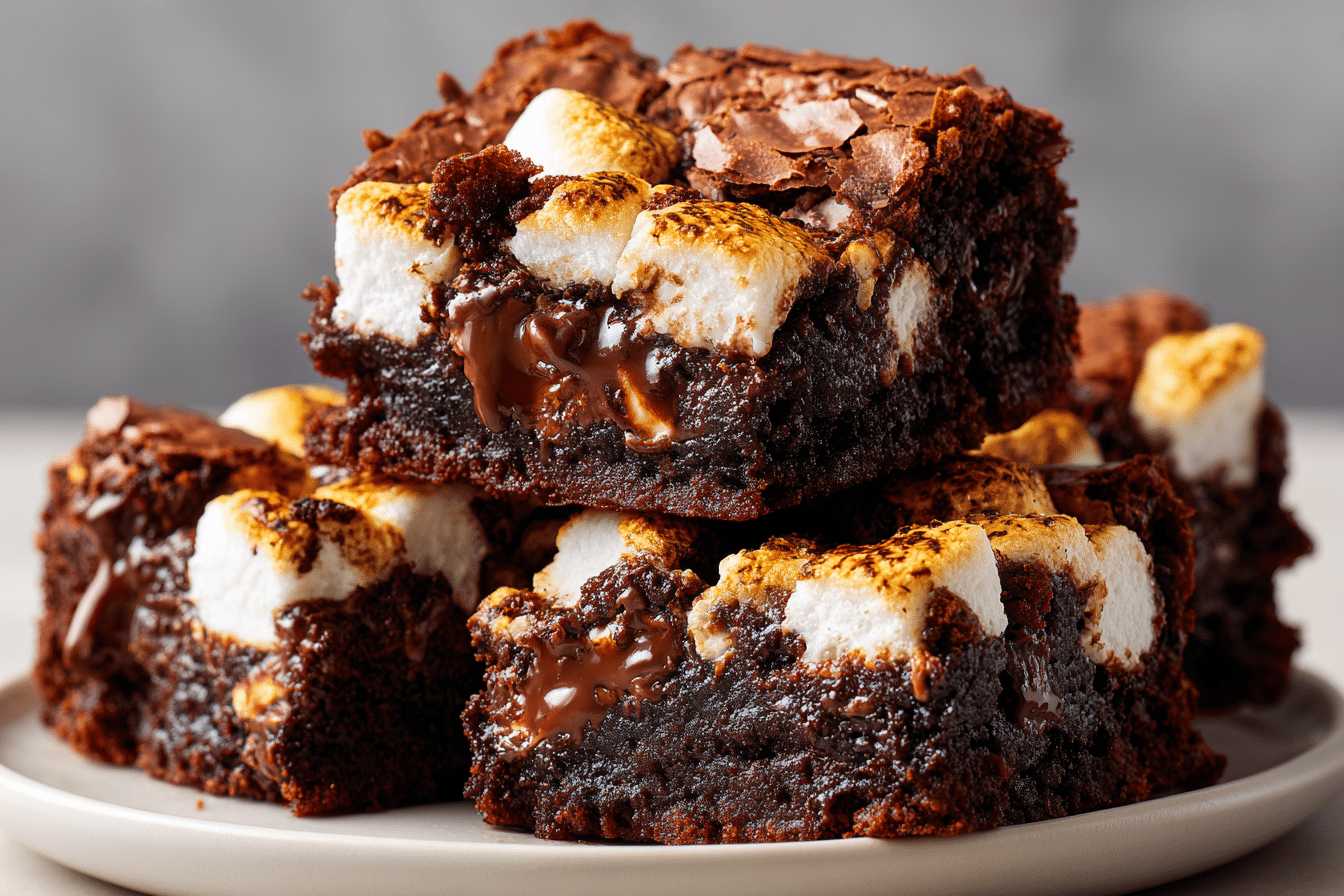 Super fudgy brownies with a gooey, melted marshmallow topping — rich, chewy, and perfect for cozy, nostalgic dessert cravings.
