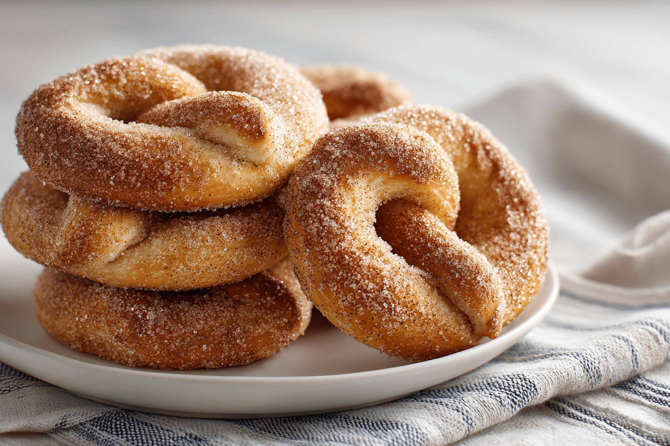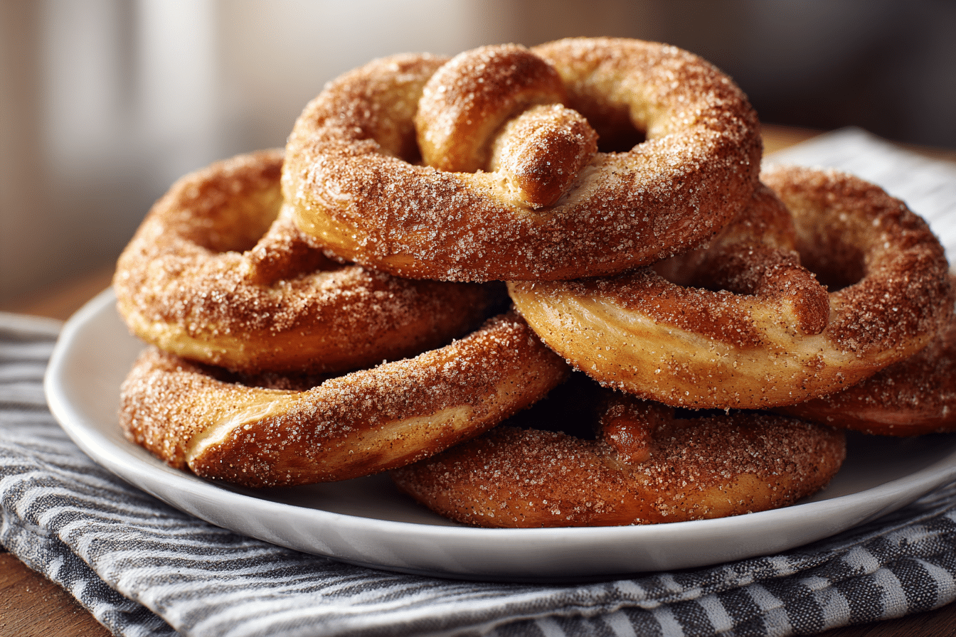 These soft, golden Cinnamon Sugar Soft Pretzels are oven-baked, buttery, and coated in sweet cinnamon sugar. Perfect for snacking, gifting, or cozy weekends.